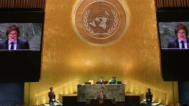 En septiembre del año pasado, Milei pronunció un discurso muy crítico hacia las Naciones Unidas cuando le tocó disertar en la apertura de la 79° Asamblea General realizada en Nueva York. En esa ocasión sostuvo que el organismo se había transformado en un “leviatán de múltiples tentáculos” que imponía una agenda ideológica a sus países miembros, como la llamada “Agenda 2030″, y había adelantado que Argentina abandonará la “posición histórica de neutralidad” para estar a la vanguardia “de la lucha en defensa de la libertad”.