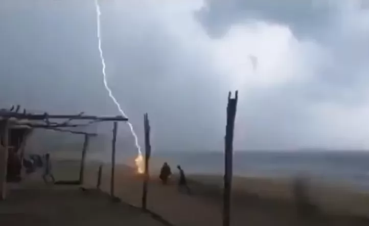 El impactante video, que se viralizó en las últimas horas en las redes sociales, muestra cómo varias personas corren de la playa para intentar protegerse; sin embargo, dos personas fueron alcanzadas por un rayo y cayeron fulminadas al suelo.
