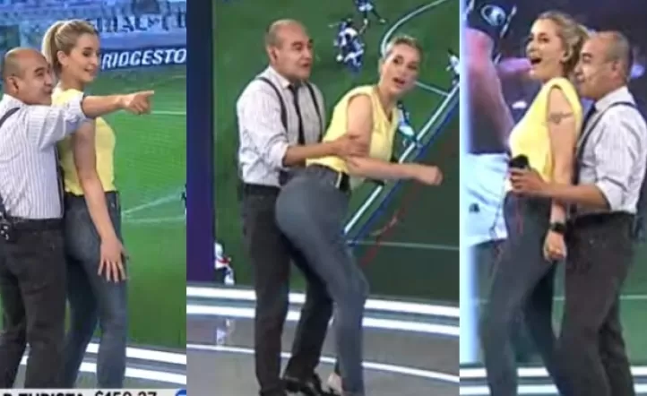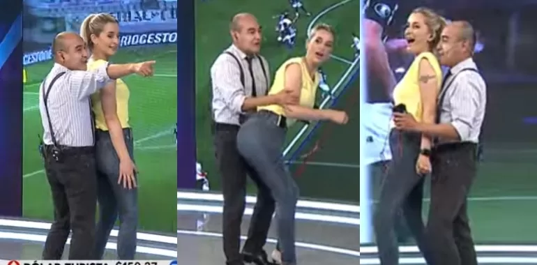 Todo comenzó cuando Elio Rossi intentaba explicar una situación del partido: “El delantero si es más grandote que vos, vos no lo podés apoyar porque te gira con el cul...”. En ese momento, Mariela Fernández le preguntó: “¿Cómo sería girar con el cul...?”. Acto seguido, el conductor la invitó a mostrar una recreación. “Si quiere le muestro, póngase de espalda”, a lo que ella respondió: “Yo lo sigo a usted, yo le giro el c..., pero usted lo gira conmigo, venga”.