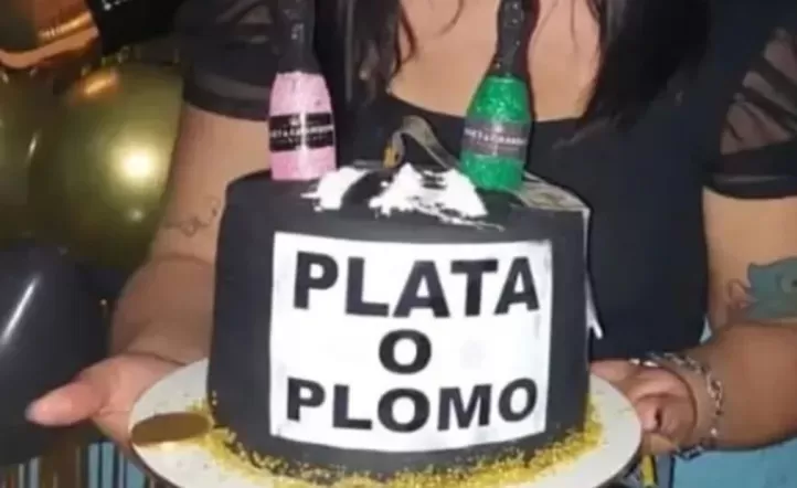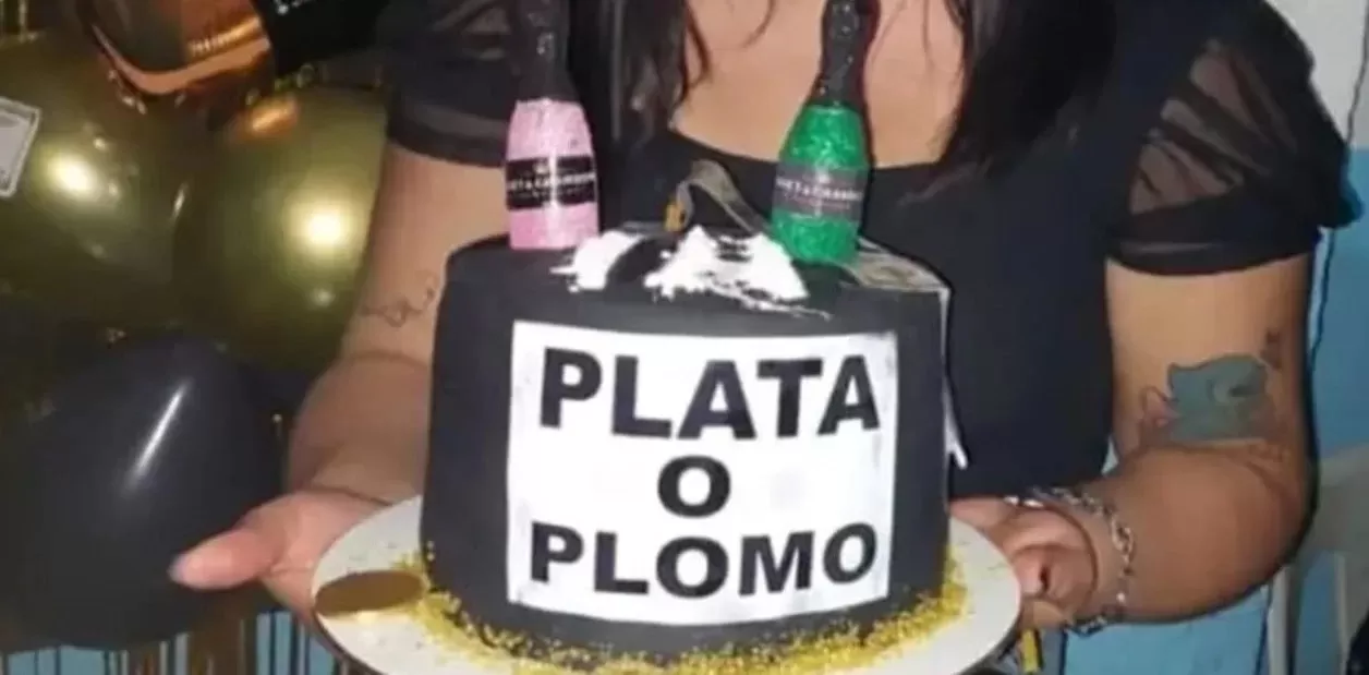 “Fiesta narco. Mis 22”. La fotografía es elocuente. Pero no es la única. La torta de cumpleaños lleva otra inscripción clara: “Plata o plomo”. Se trata de un mensaje que, en Rosario, se repite con brutal frecuencia en la operatoria delictiva.