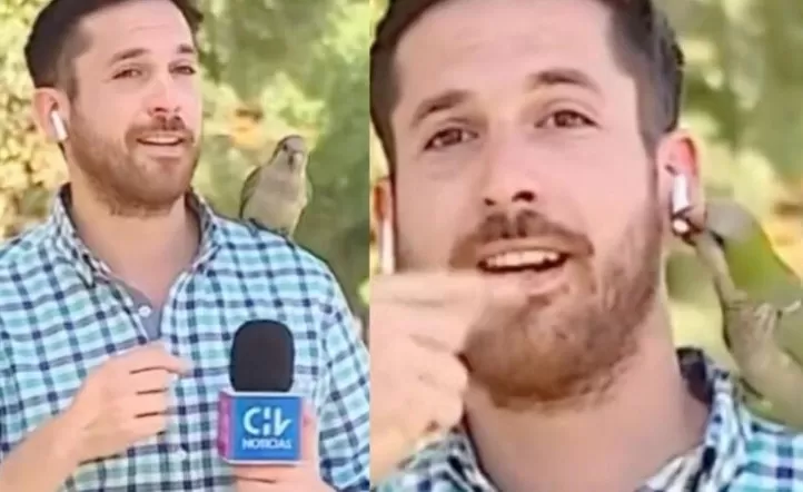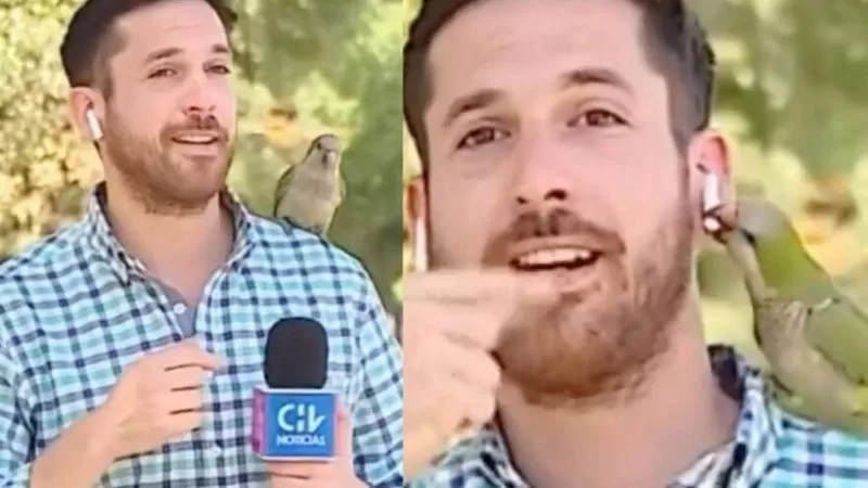 Un cronista del canal Chilevisión protagonizó un inesperado e insólito momento. Todo comenzó mientras realizaba una crónica en exteriores y un loro, que fue identificado como un ejemplar de cotorra argentina, se apoyó en uno de sus hombros, le robó los auriculares y se escapó. Como se esperaba, el video se viralizó y causó miles de reacciones.