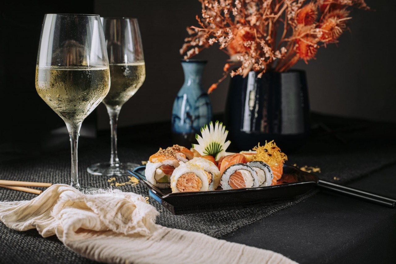 Durante las noches, la propuesta culinaria incluye piezas de sushi de estilo fusión, entradas y principales de tendencia asiática con alternativas vegetarianas, veganas y sin TACC.