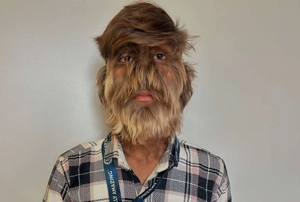 La condición del ‘hombre lobo’ Lalit Patidar, un joven de India, tiene el Récord Guiness mundial por el rostro con más pelo del mundo. Padece de una condición extremadamente rara solo ha habido 50 casos registrados en la historia humana conocida como hipertricosis-. Dice que al principio, los otros chicos le temían, pero ahor entienden que es como ellos.