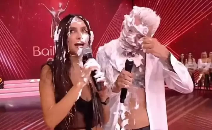 La situación se trasladó a la cabina de streaming, y tanto Vanadia como la hermana de Wanda Nara recibieron tortazos. "Indignada", Zaira bajó y llegó al piso del Bailando con una torta en la mano. La modelo caminó hasta donde estaba parado Marcelo Tinelli y le estampó la crema en la cara. Entre risas, el conductor le reclamó que él no tenía nada que ver mientras ella le explicaba que había estado dos horas arreglándose para asistir al programa.