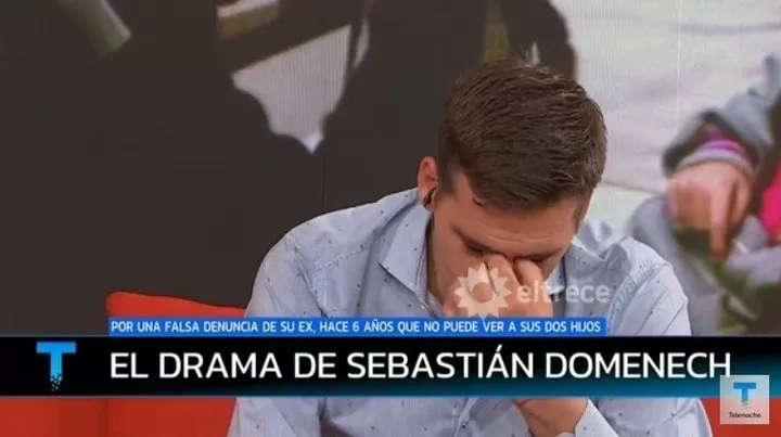 Luego de contar en las redes sociales el drama que vive desde hace seis años, cuando una medida cautelar le prohibió volver a ver a sus hijos mayores, quienes son mellizos y hoy tienen 11 años, el periodista Sebastián Domenech se quebró al aire de “Telenoche” (El Trece).