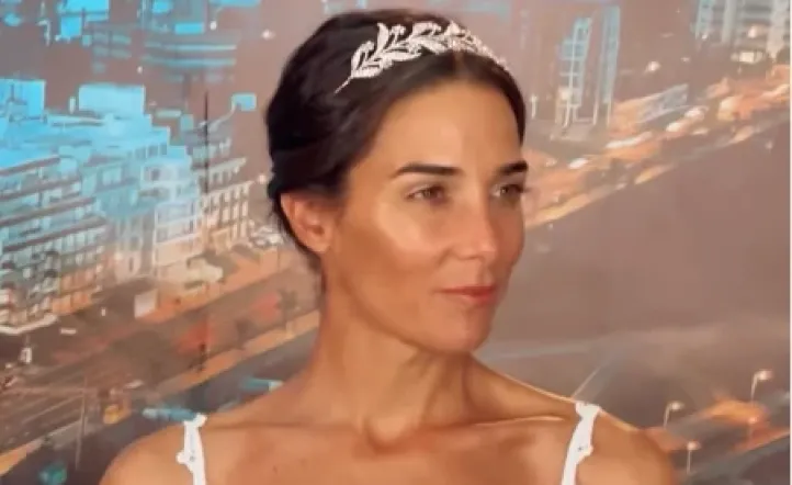 La conductora llevó un peinado recogido al que se agregó una tiara plateada y en, cuanto al maquillaje, optó por un look muy natural resaltando su bronceado.