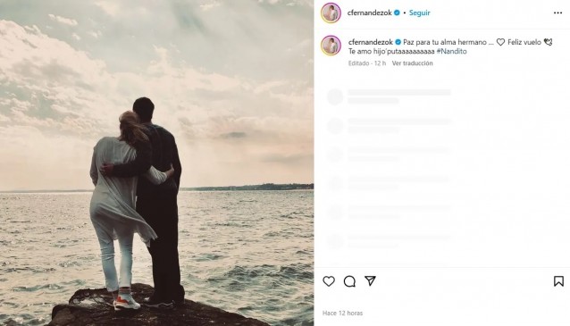 Claudia Fernández compartió algunos posteos en su cuenta de Instagram en medio de profundo dolor para despedir a su amado hermano. "Paz para tu alma hermano… Feliz vuelo Te amo hijo’ putaaaaaaaaaa #Nandito", expresó conmovida.