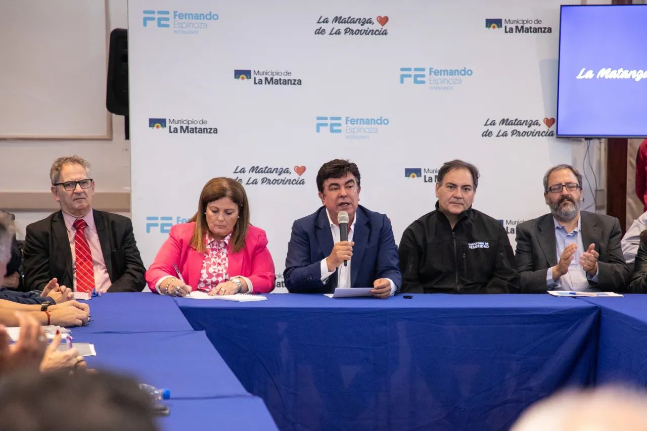 Al iniciar la reunión el intendente Fernando Espinoza destacó que “para el Municipio es un orgullo coordinar esta mesa, que es un ejemplo de trabajo conjunto con el que logramos avances. Conseguimos el doble de patrulleros que teníamos, el doble de efectivos de seguridad, vinieron las fuerzas especiales UTOI a La Matanza, abrimos 3 nuevas bases de investigaciones policiales descentralizadas en el norte, sur y centro del distrito, estamos construyendo 3 nuevas bases de las fuerzas especiales en Ramón Mejía, en Casanova, en González Catán, 6 nuevas comisarías, en 3 meses vamos a abrir una nueva unidad penitenciaria en González Catán para alojar a los detenidos de las comisarías , y también estamos haciendo una inversión en tecnología muy grande”.