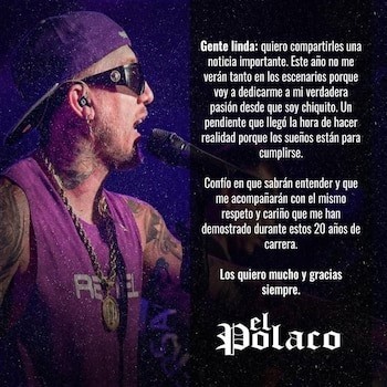 Horas antes de la publicación del Club Atlético Temperley, El Polaco anunció que este 2025 marcará un antes y un después en su trayectoria profesional. El cantante argentino, figura icónica de la cumbia durante más de dos décadas, comunicó a través de sus redes sociales que se alejará parcialmente de los escenarios para enfocarse en un proyecto personal que fue su sueño desde la infancia.