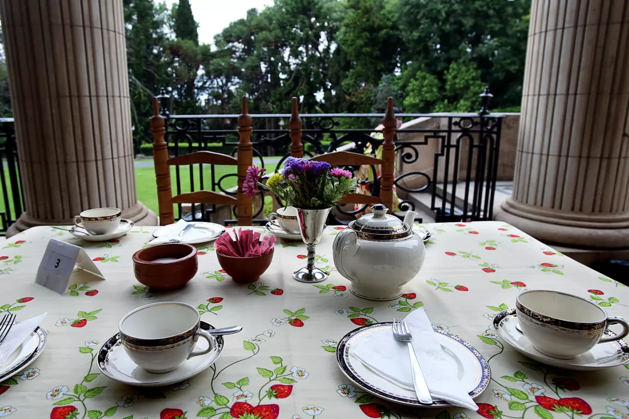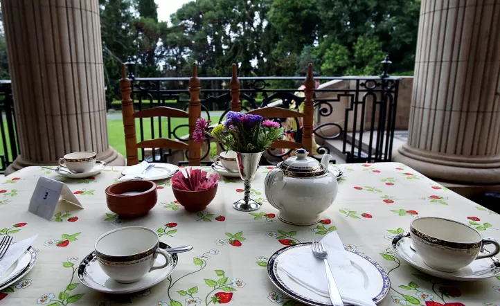 La tetera de porcelana deja salir el humo que perfuma el jardín diseñado por el arquitecto y paisajista Carlos Thays, con su despliegue de ninfas, tritones, faunos y cupidos que se mezclan con la naturaleza.