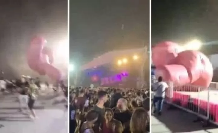 El temporal destruyó la fiesta Bresh: se cayó el escenario y se voló el mítico oso inflable