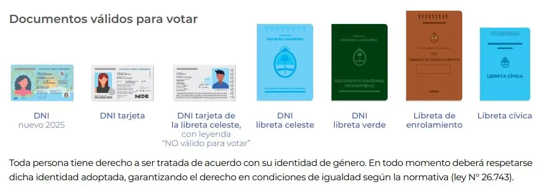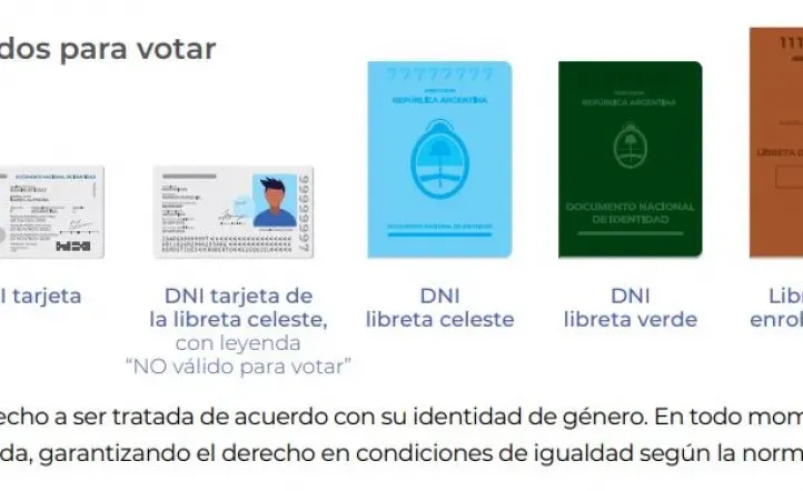 La Cámara Nacional Electoral (CNE) y el Gobierno nacional difundieron el listado de documentos habilitados para votar. Cualquiera de las siguientes credenciales es válida para ejercer el derecho al voto: