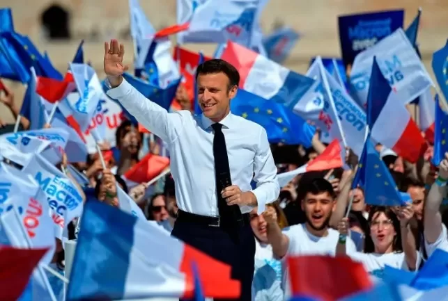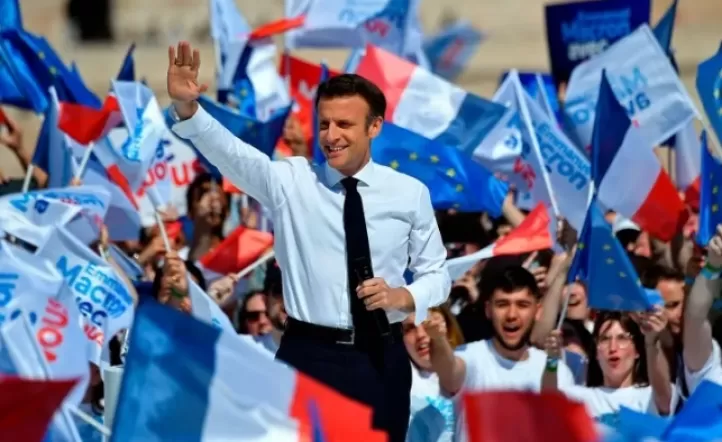 A los 44 años, es el noveno presidente de la Quinta República, el primero reelecto después de Jacques Chirac, quien derrotó en 2002 al padre de Marine Le Pen, Jean-Marie Le Pen, fundador del Frente Nacional. Tras conocerse los primeros datos, una multitud salió con banderas francesas y europeas al Campo de Marte, bajo la Torre Eiffel, para celebrar la victoria de frente a la candidata nacionalista Marine Le Pen.