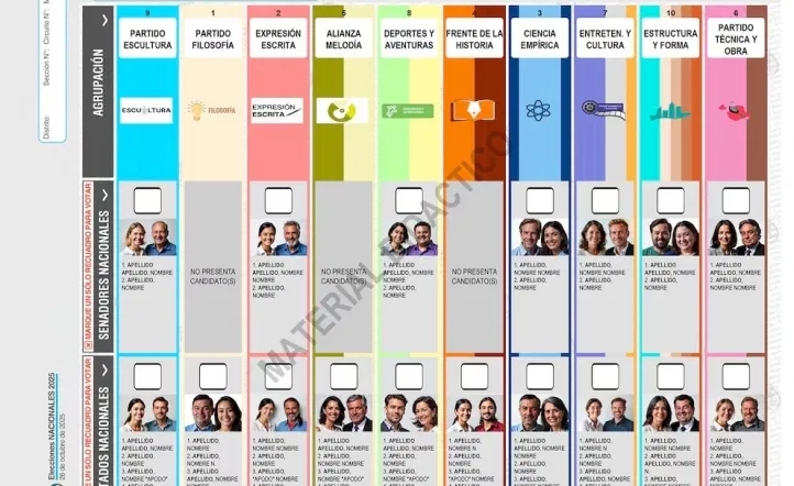 Para las agrupaciones que no presenten candidatos en alguna categoría, el espacio correspondiente incluirá la leyenda: “No presenta candidato”. Por otra parte, las listas completas de candidatos, junto con sus suplentes, serán exhibidas en afiches obligatorios dentro de cada centro de votación y en los cuartos oscuros, con el objetivo de garantizar claridad y accesibilidad a la información.