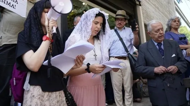 Sin embargo, el episodio no quedó allí. La emisión debió finalizar antes de lo previsto debido a la presencia de un grupo de manifestantes frente al canal, quienes organizaron un "rezo masivo del Santo Rosario" como forma de protesta.