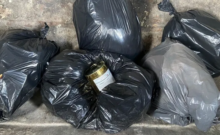 Según detallaron fuentes oficiales, se trata del mismo contenedor donde el mismo martes por la noche fue encontrada por un vecino la caja contenedora del producto, pero sin la lata con el material.
