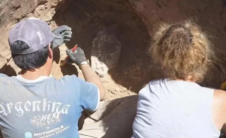 Además puntualizó que “se encontró la parte más importante que es el cráneo, y junto a él otra parte distintiva que es el colmillo diente de sable” reveló y adelantó que antes de seguir en la búsqueda de cada pieza, si es que las hay, que “a los costados están apareciendo las patas anteriores articuladas y logramos encontrar una conexión de lo que sería el cráneo y el resto del cuerpo, por lo que hay grandes probabilidades de que este material esté muy completo, con lo que hace al hallazgo mucho más importante y particular”, concluyó.