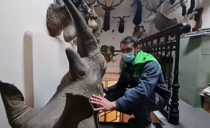 En el operativo se pudo constatar la existencia de un cuarto cerrado por una puerta de vidrio donde se encontraron las piezas. Entre ellas, se observaron restos conservados de elefante, rinoceronte, león, leopardo, búfalo caffer, facocero, antílopes, sitatunga, kudú menor, gran kudú, órix, eland, waterbuck, kobus leche e impala y tar del Himalaya.