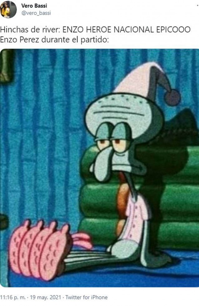 En una noche que quedará guardada para siempre en la memoria de los hinchas de River, no podían faltar los tradicionales memes. Tras la histórica victoria del Millonario frente a Independiente Santa Fe, los tuits ingeniosos invadieron las redes sociales y tuvieron prácticamente un solo protagonista: Enzo Pérez.