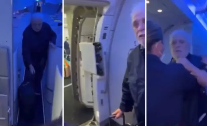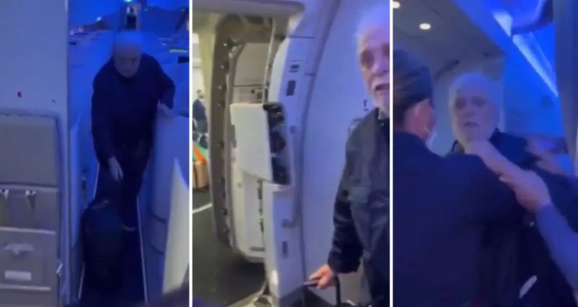 En un movimiento extraño, él estiró la mano y el celular de la pasajera se cayó. Las azafatas tuvieron que sostenerlo para que no siga la discusión.