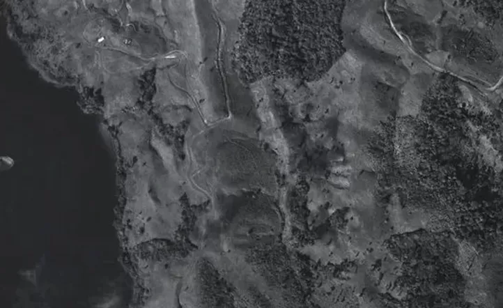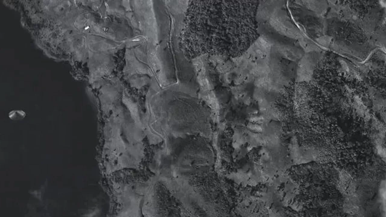 Mientras volaba sobre el lago Cote, tomó varias fotos en blanco y negro de alta resolución del lago y la selva tropical circundante en intervalos de 20 segundos. En este marco, con la hora marcada a las 8:25 am, se puede ver un disco metálico brillante que se parece extrañamente a un clásico “platillo volador” extraterrestre entre el suelo y el avión de Sergio.
