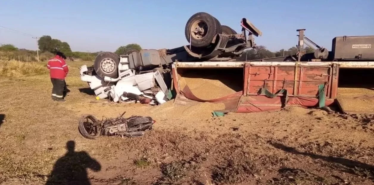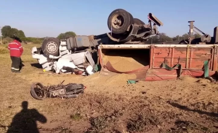 Luego de atacar con un cuchillo a su mujer, Miranda tomó la ruta 16 y chocó de frente a un camión que transportaba trigo y maíz. Por el fuerte impacto, el chofer perdió el control del vehículo y volcó.