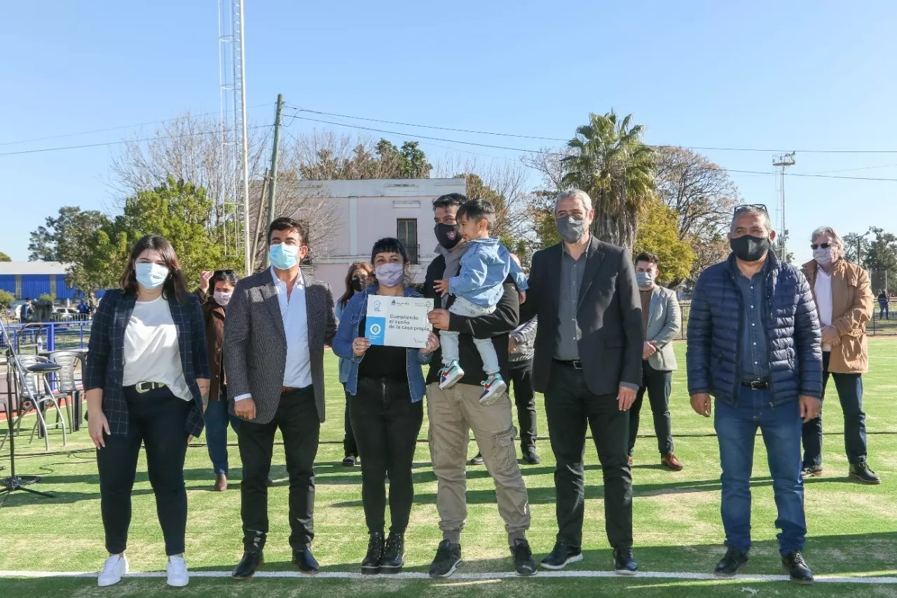 El intendente de La Matanza, Fernando Espinoza, junto al ministro de Desarrollo Territorial y Hábitat, Jorge Ferraresi, encabezaron la entrega de créditos hipotecarios a tasa cero para construcción de la línea Créditos Casa Propia a las familias ganadoras del sorteo del mes de mayo que, a partir de hoy, ya podrán comenzar a construir nuevas viviendas en lotes propios. Son 40 familias de La Matanza que se suman a las miles que podrán edificar su hogar en todo el país.