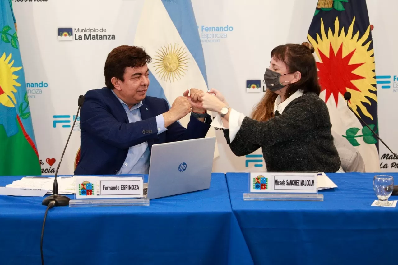 El intendente de La Matanza, Fernando Espinoza, junto a la secretaria de lnnovación Pública de la Jefatura de Gabinete de Ministros de la Nación, Micaela Sánchez Malcolm, firmaron un convenio marco de cooperación para la incorporación de tecnología que permitirá la despapelización de los procesos administrativos del municipio a través de la implementación de la plataforma integral de Gestión Documental Digital.