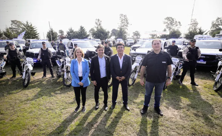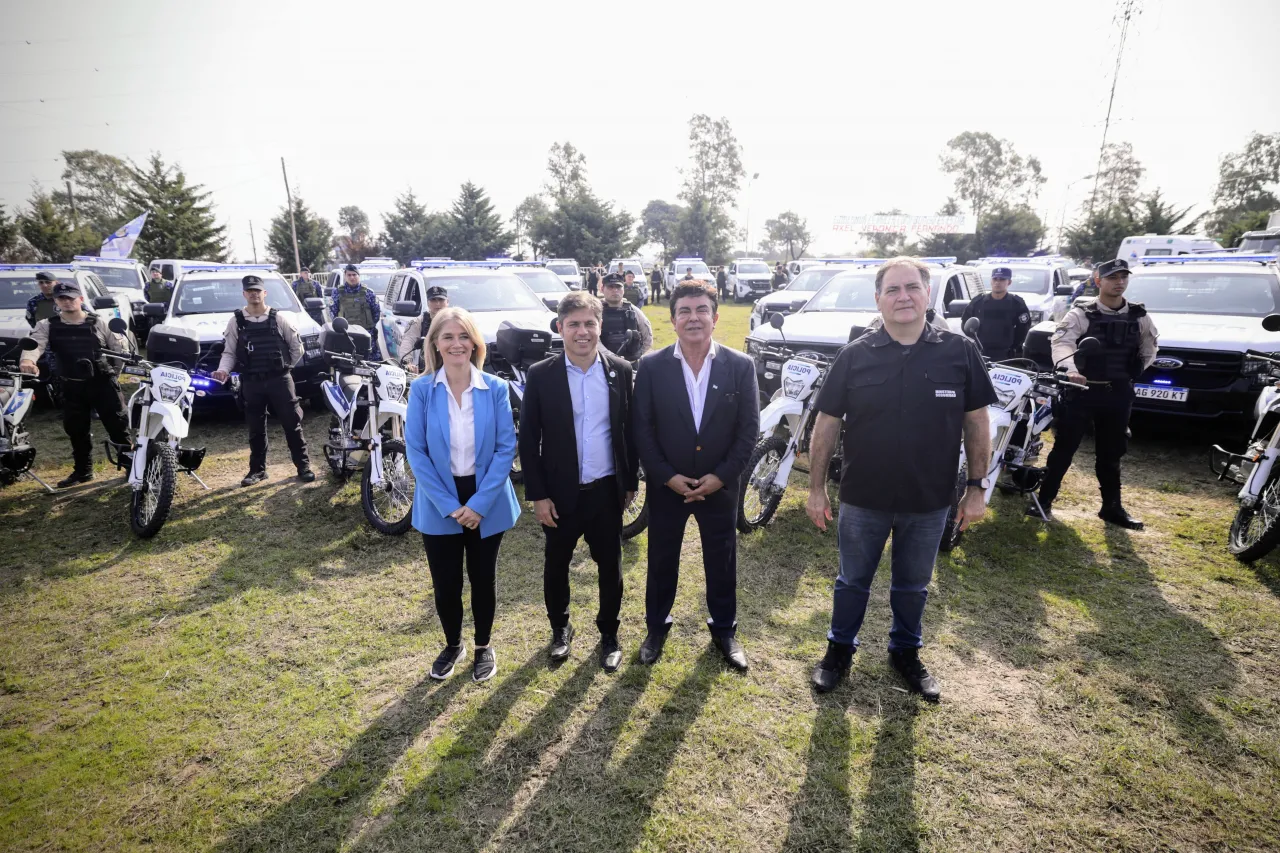 El intendente de La Matanza y presidente de la Federación Argentina de Municipios (FAM), Fernando Espinoza, junto al gobernador de la provincia de Buenos Aires, Axel Kicillof, la vicegobernadora, Verónica Magario, y el ministro de Seguridad bonaerense, Javier Alonso, pusieron en funcionamiento nuevos vehículos: motos y camionetas para la Policía provincial, y patrulleros para la Guardia Urbana municipal. Además, inauguraron una nueva base de la Fuerza Barrial de Aproximación (FBA), que cuenta con 100 nuevos efectivos para potenciar la seguridad en el distrito, a partir de una mayor proximidad entre el personal policial y la comunidad.