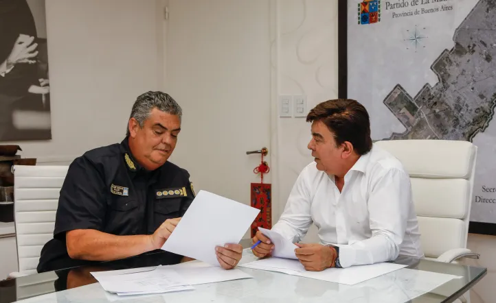 En la reunión, se coordinaron acciones concretas con el jefe de la Policía bonaerense, Javier Villar, destinadas a intensificar los operativos de patrullaje en el distrito y optimizar la articulación con el COM.