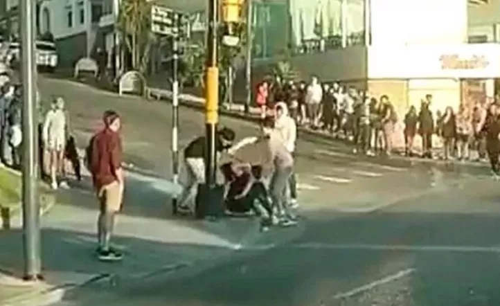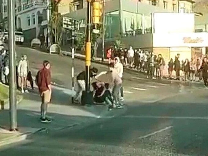 La grabación muestra detalles de la violenta secuencia, que se inicia cuando un grupo de chicos se enfrentan a golpes de puño junto al semáforo que está instalado en la esquina de calle Castelli y avenida Patricio Peralta Ramos. A uno de los protagonistas se lo distingue especialmente porque aparece sin remera.