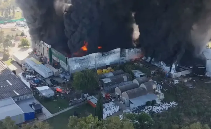 La columna de humo se puede ver a varios kilómetros. Las autoridades pidieron evitar circular por la zona, ya que se trata de productos químicos altamente tóxicos. Los vecinos también fueron evacuados.