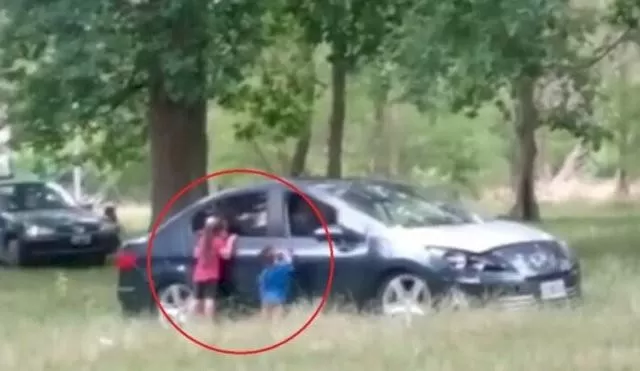 El video en cuestión muestra cómo los menores intentan abrir las puertas a la fuerza, y miran hacia el interior a través de los vidrios polarizados para que sus padres reaccionen a tiempo.