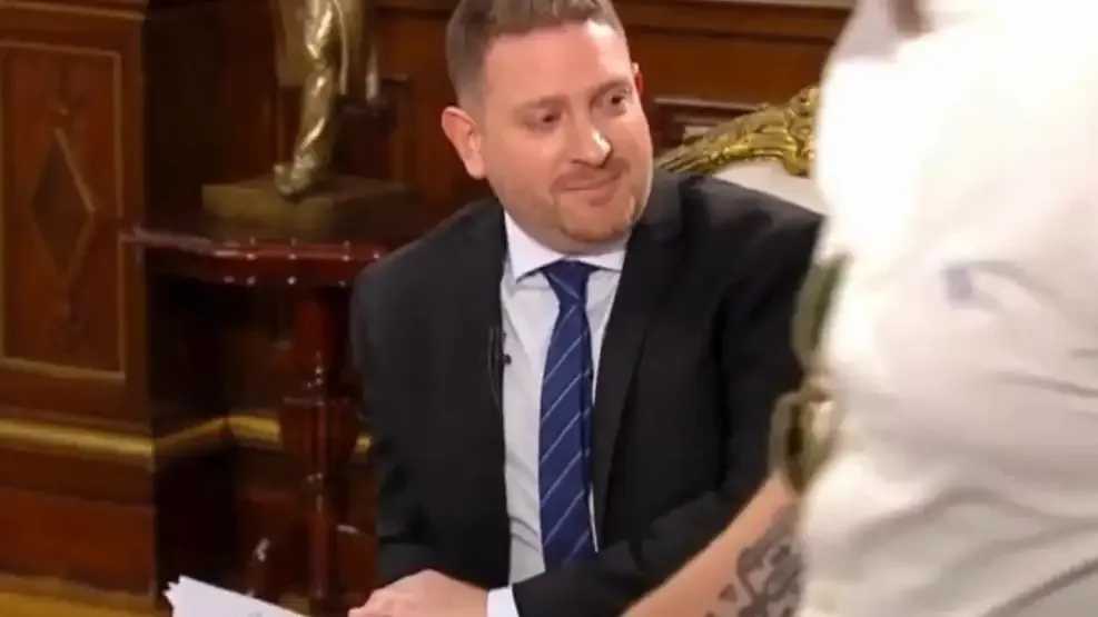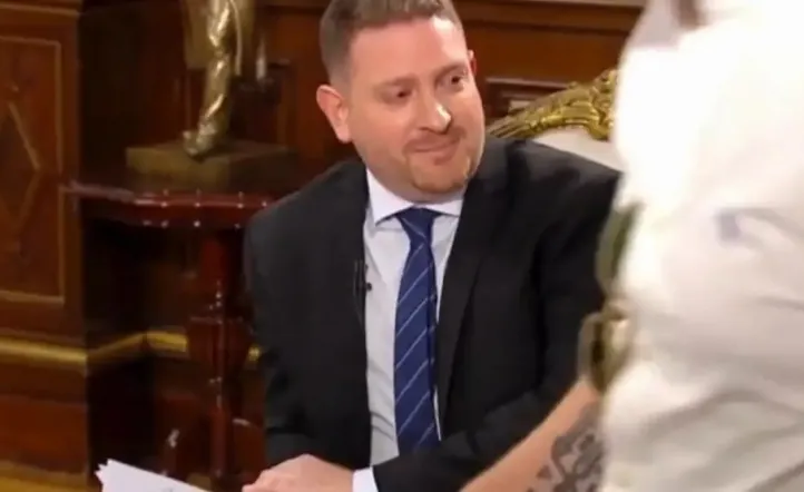 “Sí, pero mi cuenta es personal”, diferenció el presidente y mencionó que su descripción en X no menciona su investidura y que sólo dice “economista”. “¡Pero sos el presidente!”, insistió Viale. En ese momento la conversación fue interrumpida por una voz detrás de cámara, sin micrófono, que le pide al conductor “cortar” y, ante el reproche de Viale porque “no sé cómo venía” la charla, le pidió “arrancar con la pregunta de vuelta”. “Sí, yo sé por qué”, dijo Viale, complaciente. En cámara aparece desenfocado un hombre rubio de camisa blanca y tatuajes que, en redes sociales, identificaron como Santiago Caputo.