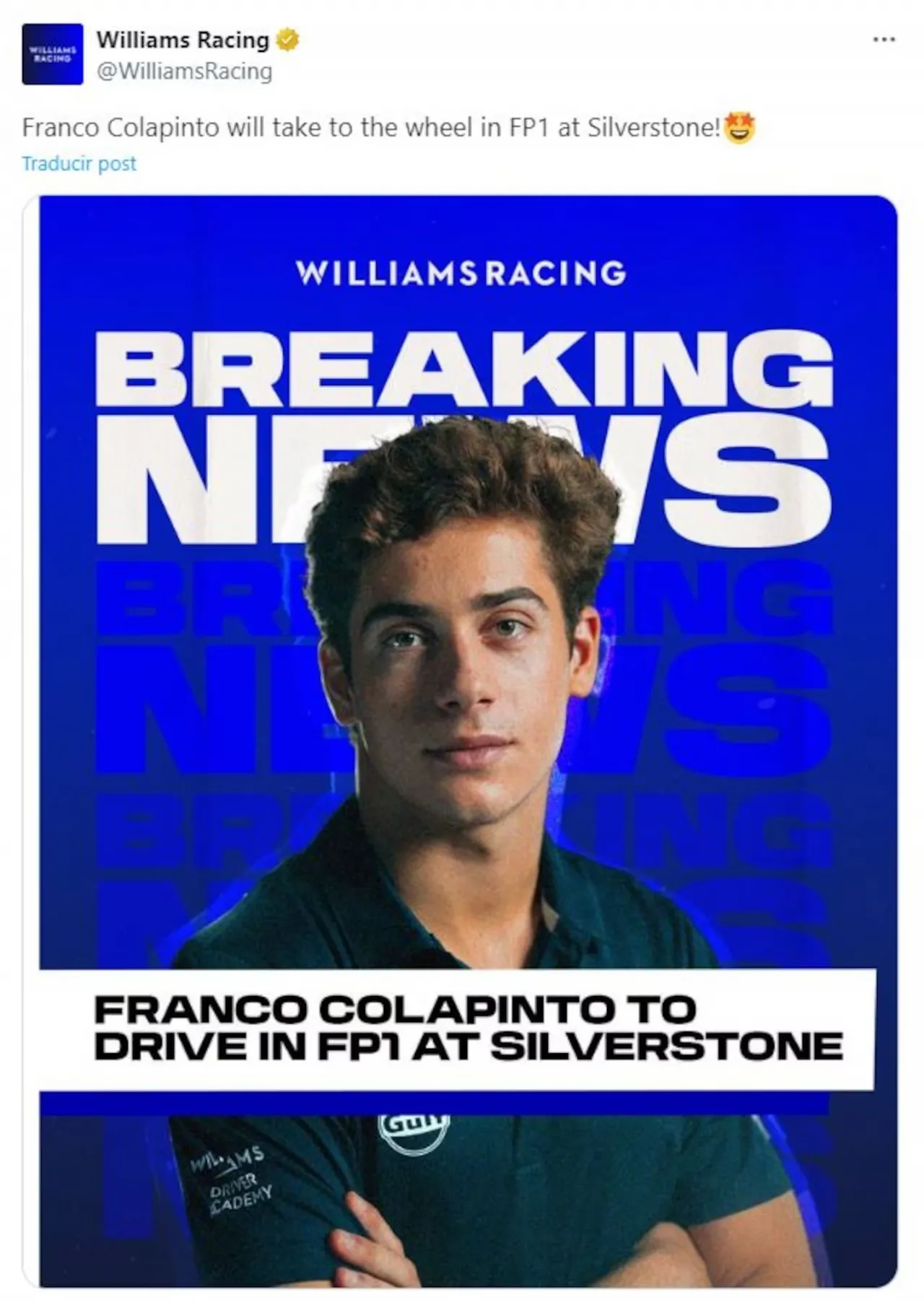 De todos modos, Chinchero dejó claro que cualquier paso que Colapinto pretenda dar estará condicionado por su vínculo con el equipo Williams, al que actualmente representa. “Tendremos que ver cuál será la respuesta de Williams. Hay una cuestión de gratitud de Colapinto, que fue apoyado por Williams cuando no tenía otras oportunidades. Veremos cómo evoluciona la situación”, añadió el periodista.