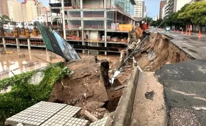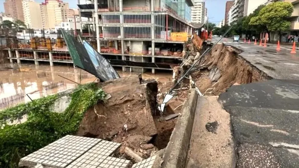 Por la intensa tormenta, se desmoronó un sector de la Avenida Vélez Sarsfield hacia una obra en construcción. Alta Gracia, Anisacate, Santa Ana y Villa San Isidro también resultaron afectadas.