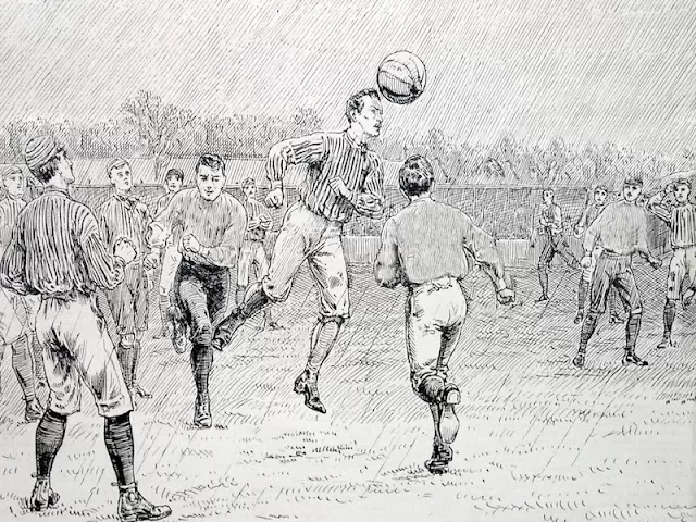 O.G: Bueno, el cronista describe jocosamente las desventuras de unos oficinistas que juegan al “fútbol inglés” durante unos 40 minutos. Entre algunas curiosidades aclara que en ese lugar estuvo la casa Rosas, que no es otro que Juan Manuel. Llega con el partido empezado ya unos diez minutos antes y se encuentra con tres caballeros, totalmente agotados, que se dirigen a tomar un refresco. En la cancha, ve al menos 12 atletas más que patean una pelota de fútbol, sin tener muy claro para dónde tiene que ir el balón, según su punto de vista, claro. Menos de diez personas los están mirando. Al finalizar el encuentro, los jugadores deciden descansar a la sombra de un sauce llorón. Para él, lo más destacado fue un joven que al intentar patear la pelota, le pegó a la saliente de un árbol y se machucó “el dedo grande del pie”. Esto último lo escribió en castellano. Dice que no más de diez espectadores asistieron al encuentro y menciona añoranzas de partidos de fútbol que él mismo jugó en su juventud y en la época escolar en el “old country”, que entiendo se refiere a Inglaterra, país de origen de la mayoría de los lectores de ese diario.