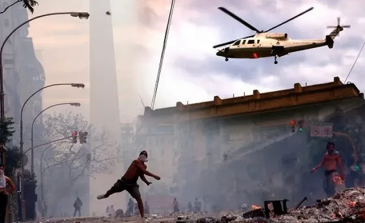Un 19 de diciembre de 2001 por la noche, en Argentina, una protesta masiva y espontánea estalló apenas el presidente decretó el estado de sitio. La medida, tomada en un intento desesperado por frenar una ola de saqueos que ya se estaba expandiendo por todo el país, terminó provocando exactamente lo contrario: unió a la clase media a la que el dinero ya no le alcanzaba, a los ahorristas a los que el gobierno les impedía retirar sus propios depósitos, a quienes hacía tiempo no tenían para comer y a los desocupados que llevaban años sin encontrar trabajo. Durante esa noche y a lo largo de todo el día siguiente, el país entró en una secuencia transmitida en vivo: cacerolazos, una Plaza de Mayo colmada, una represión de una violencia inédita, decenas de muertos y la renuncia del presidente de la Nación.