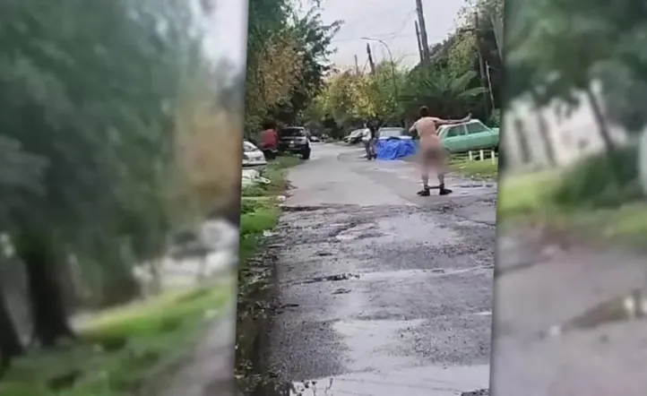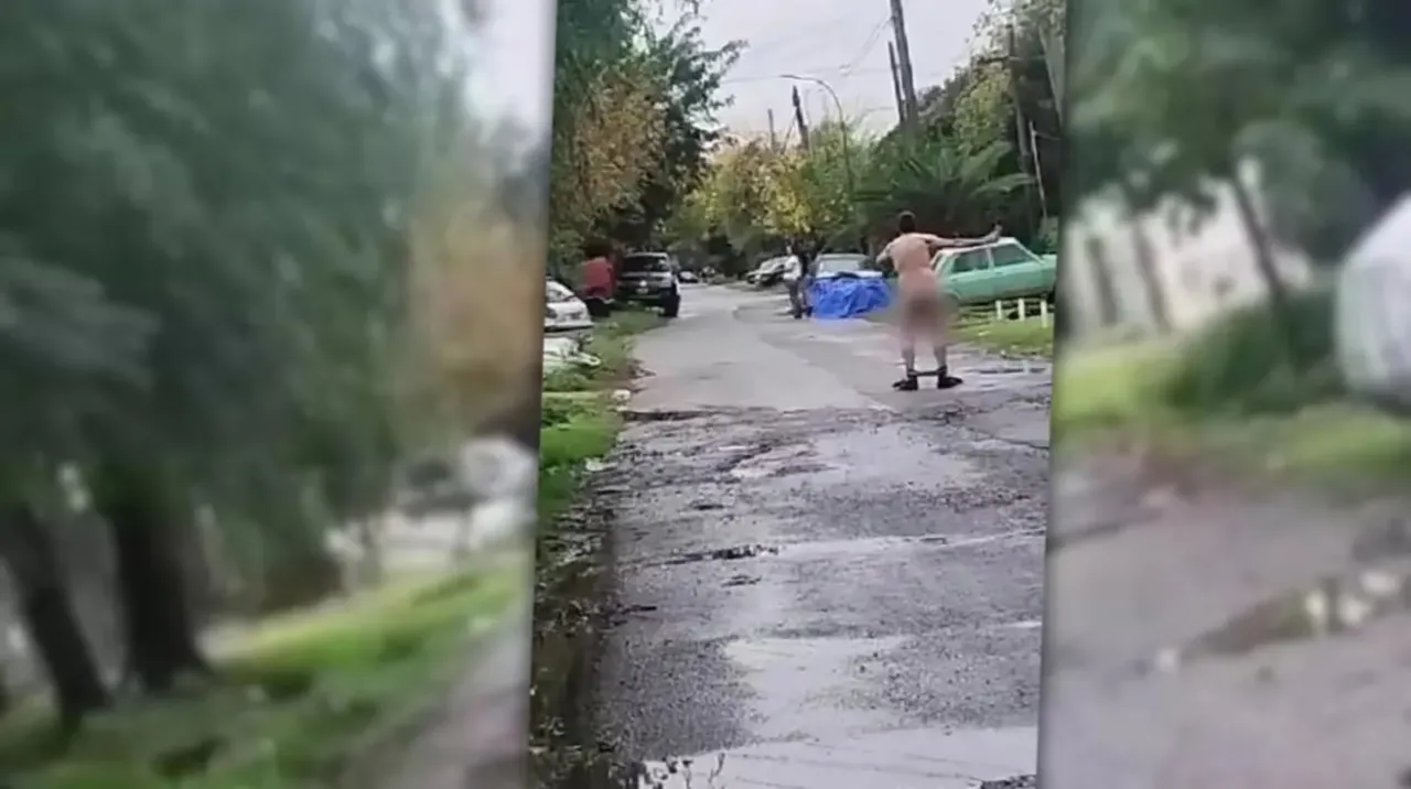 Las impactantes imágenes fueron filmadas por frentistas de la zona. En un video se ve como el supuesto agresor grita en la calle, tras quitarse la ropa interior.