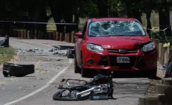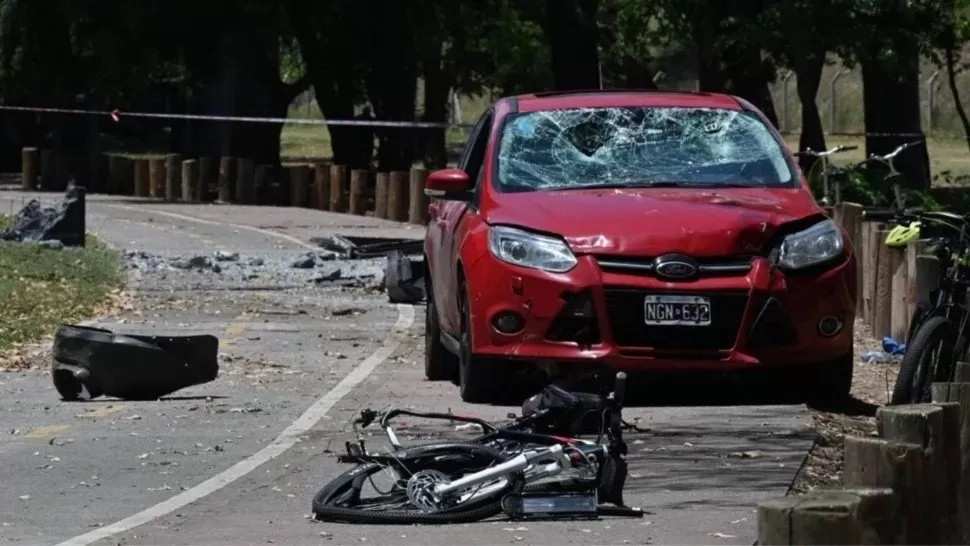 Mientras tanto, las dos mujeres de 20 y 22 años que lo acompañaban en el auto retiran cosas de adentro del Focus dispuesto sobre la vereda, con los airbags abiertos y el parabrisa estallado por el impacto con los ciclistas y runners que se ejercitaban en el lugar donde Olaya González perdió el control del vehículo.