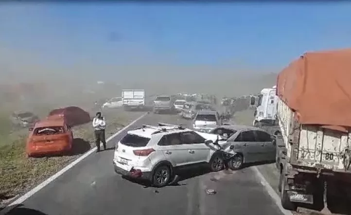 Impresionante choque múltiple de 40 vehículos por una tormenta de viento y tierra en Santa Fe: murió una mujer