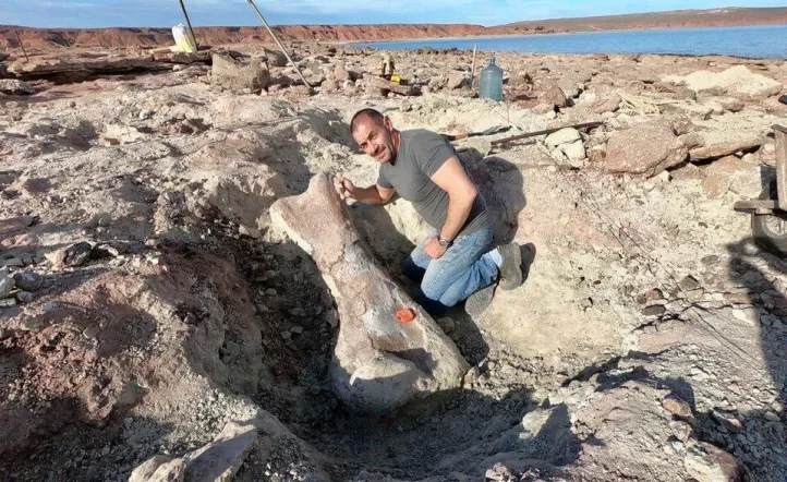 Increíble hallazgo en Neuquén: por la bajante de un algo, aparecieron restos de un dinosaurios gigante