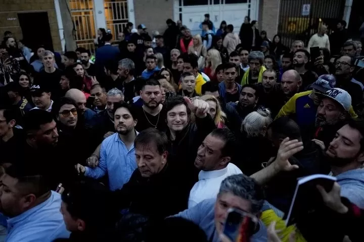 Alrededor de 500 personas se congregaron en el centro del barrio porteño de Villa Lugano, en la intersección de las calles Piedra Buena y Chilavert, para ser parte de una caravana de algunas cuadras que emprendió Javier Milei hacia el club El Ideal, ubicado en la calle Montiel, y donde el candidato libertario fue arquero de Futsal a mediados de los '80.