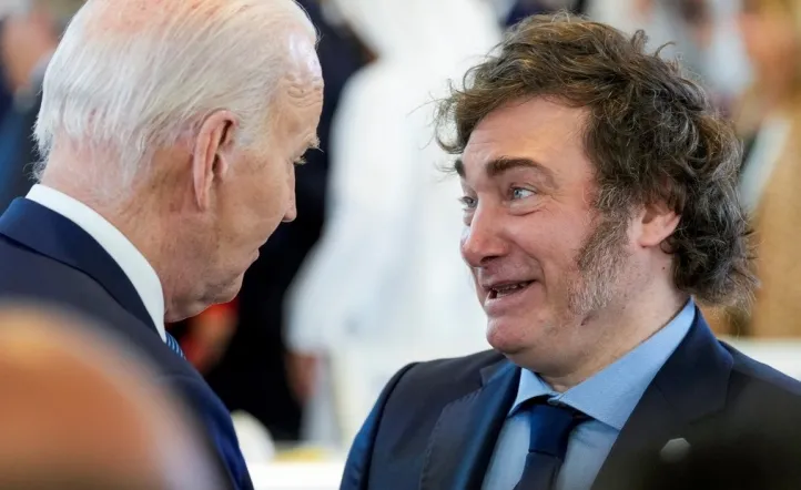 El presidente Javier Milei mantuvo este viernes una breve y distendida charla con su par de Estados Unidos, Joe Biden, antes del inicio de un panel sobre inteligencia artificial y energía en el G7.
