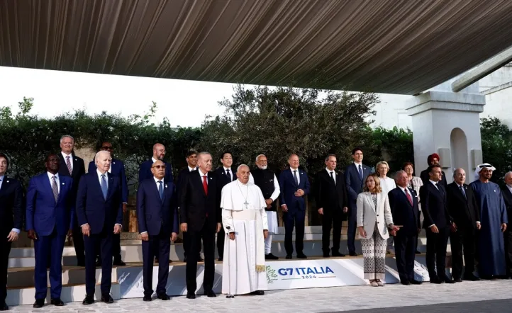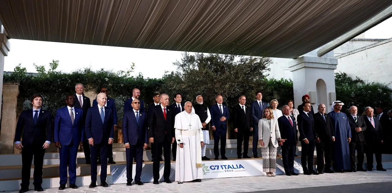Javier Milei posó en la tradicional foto con los líderes del G7 y el Papa Francisco