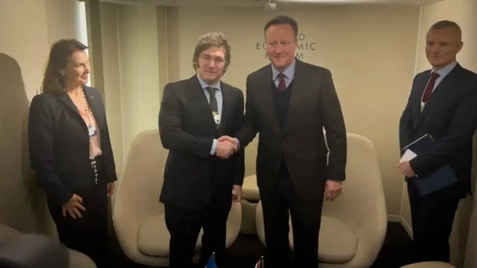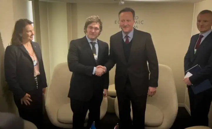 El presidente Javier Milei mantuvo hoy un encuentro con el secretario de Estado para las Relaciones Internacionales del Reino Unido, David Cameron, en el marco del Foro Económico Mundial que se desarrolla en Davos, Suiza.