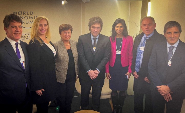 Javier Milei ante Kristalina Georgieva ratificó su decisión política de aplicar un fuerte plan de ajuste durante la reunión que protagonizaron en el Foro Económico de Davos. La directora gerente del Fondo Monetario Internacional (FMI) exhibió su sorpresa por la velocidad en la toma de medidas del Presidente y elogió al equipo técnico que lideró el titular del Palacio de Hacienda, Luis Caputo, durante las negociaciones para alcanzar el Staff Level Agreement (SLA.)