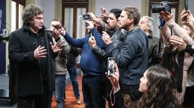 Milei cayó de sorpresa a la conferencia de prensa de Adorni y habló con los periodistas acreditados en Rosada. Dijo: