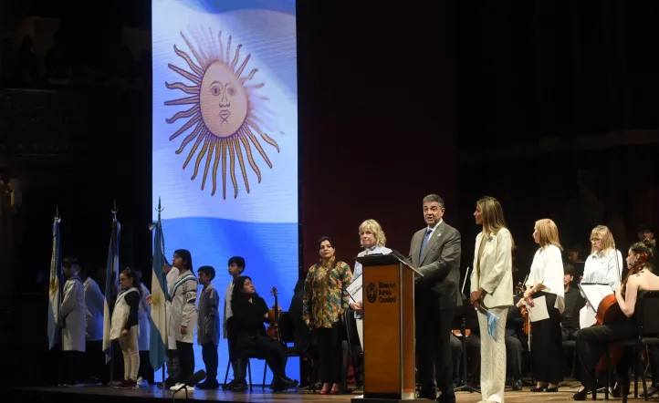 Esta mañana, más de 1000 alumnos de 4º grado participan en una emotiva ceremonia de Promesa de Lealtad a la Bandera, presidida por Jorge Macri en el prestigioso Teatro Colón. El acto, que comenzó a las 9:45 hs, reune a familias, docentes y autoridades para celebrar este tradicional compromiso que los niños realizan hacia uno de los símbolos más importantes de nuestra patria.