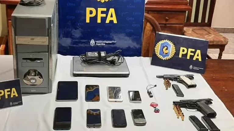 La PFA diez CPU, veinte discos rígidos, tres rígidos externos, cámaras filmadoras, pendrives, notebooks y 40 celulares. La Bonaerense halló 63 teléfonos y 110 discos rígidos, además de 29 notebooks y diez otros CPU, con más de 90 tarjetas de memoria.
